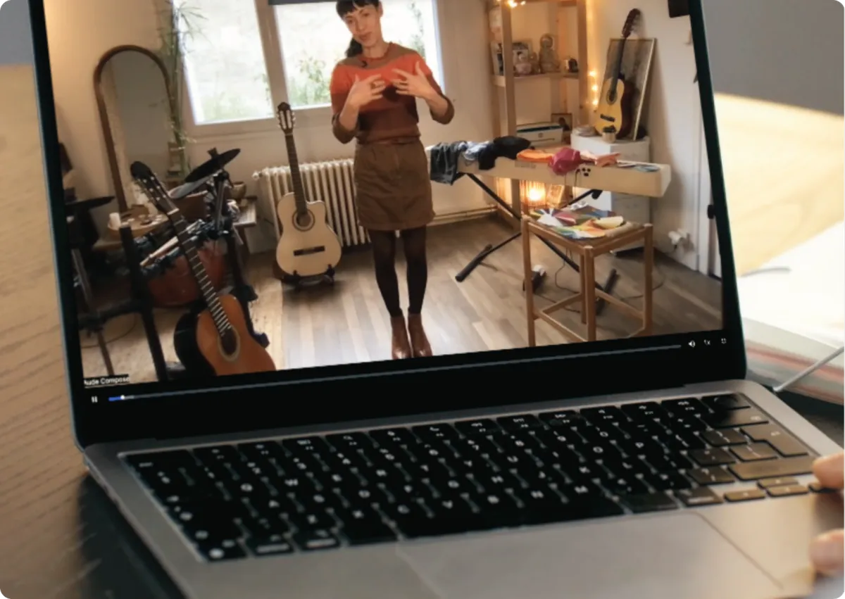 J’accompagne des artistes, des professeur·es et des coachs à écrire, composer et interpréter leurs propres chansons, avec une approche qui relie l’écriture, le corps et la voix.